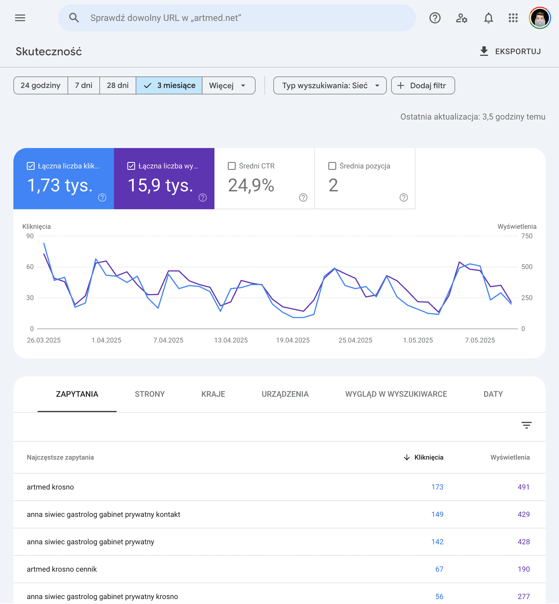Dominacja w Google na frazy kluczowe związane z Wrocławiem.